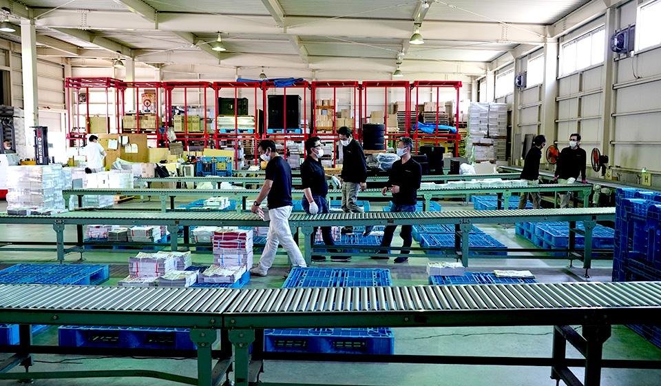 - A:大阪府下の新聞販売店にルートバンで折込チラシを配送する仕事です。毎日決まった時間に安全に確実に商品をお届けしなくてはなりません。その他にセンター内で折込チラシの梱包作業も行っています。